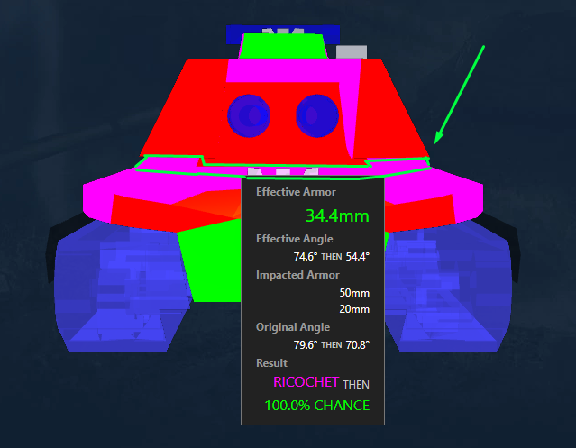 So if you want an easy penetration, aim for the upper part of the upper plate, just near the turret, it will auto richochet into the enemy’s hull and deal damage.